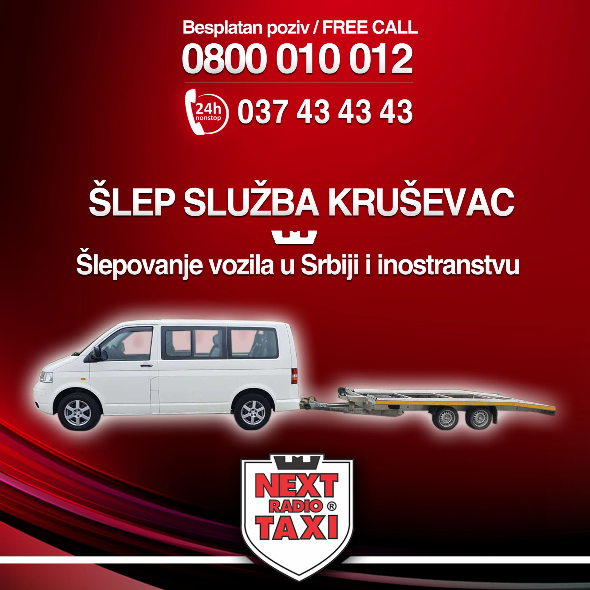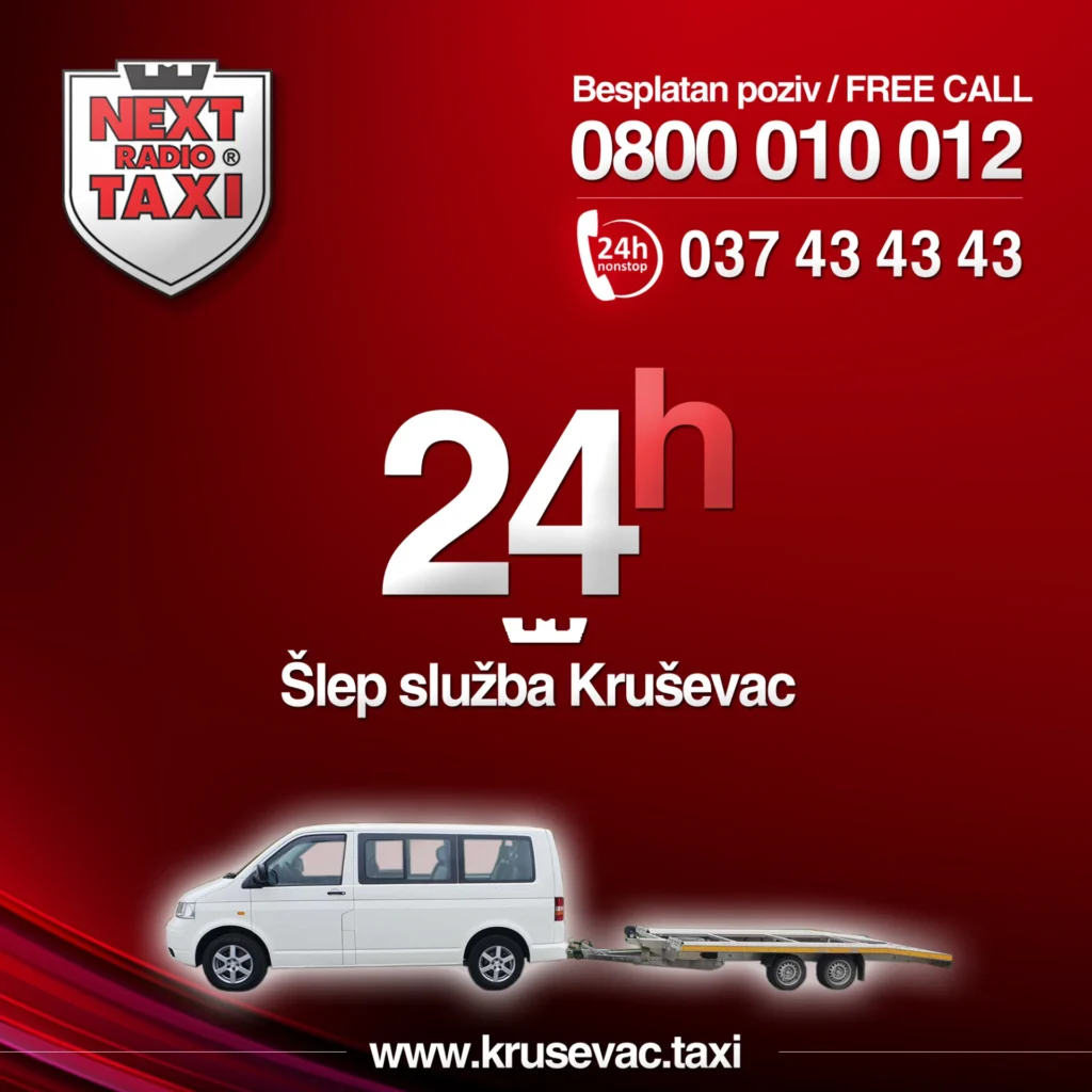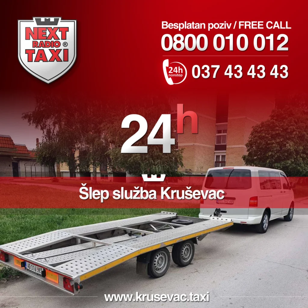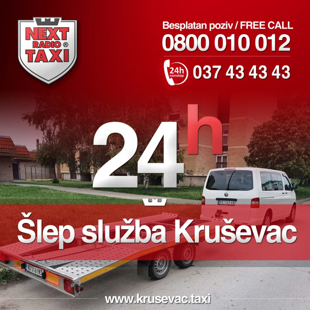 Kada se nađete u nepredviđenoj i neprijatnoj situaciji na putu u Kruševcu ili okolini, usled iznenadnog kvara vozila, saobraćajne nezgode ili bilo kog drugog problema koji vas sprečava da nastavite putovanje, Šlep služba Kruševac – NEXT je vaš pouzdan partner spreman da vam pruži brzu i efikasnu pomoć. Razumemo da se problemi na putu ne dešavaju po planu, zbog čega smo vam na raspolaganju svakodnevno, 7 dana u nedelji, 24 časa dnevno. Bez obzira na doba dana ili noći, naš tim je uvek spreman da odgovori na vaš poziv i pruži profesionalnu uslugu šlepanja. Dugi niz godina uspešno poslujemo na teritoriji naše zemlje i inostranstva, gradeći reputaciju pouzdanosti i efikasnosti, o čemu svedoči mnoštvo zadovoljnih klijenata.